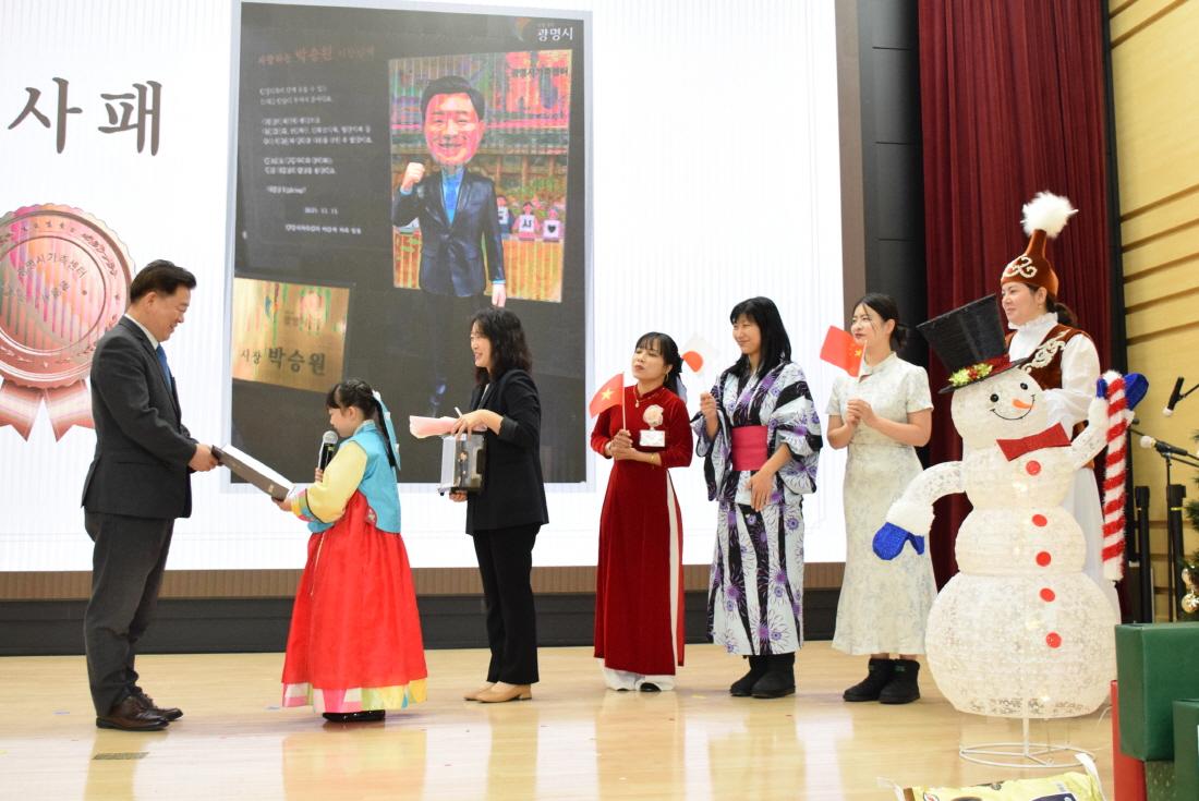 박승원 광명시장은 “가족의 행복 증진과 다문화가족의 안정적 정착을 위해 헌신한 가족센터 관계자 여러분에게 감사하다”며 “2025년의 노력과 성과를 바탕으로, 2026년에는 내국인과 외국인이 함께 어울려 소통하고 상생하는 따뜻한 공동체를 만들어가겠다”고 말했다.