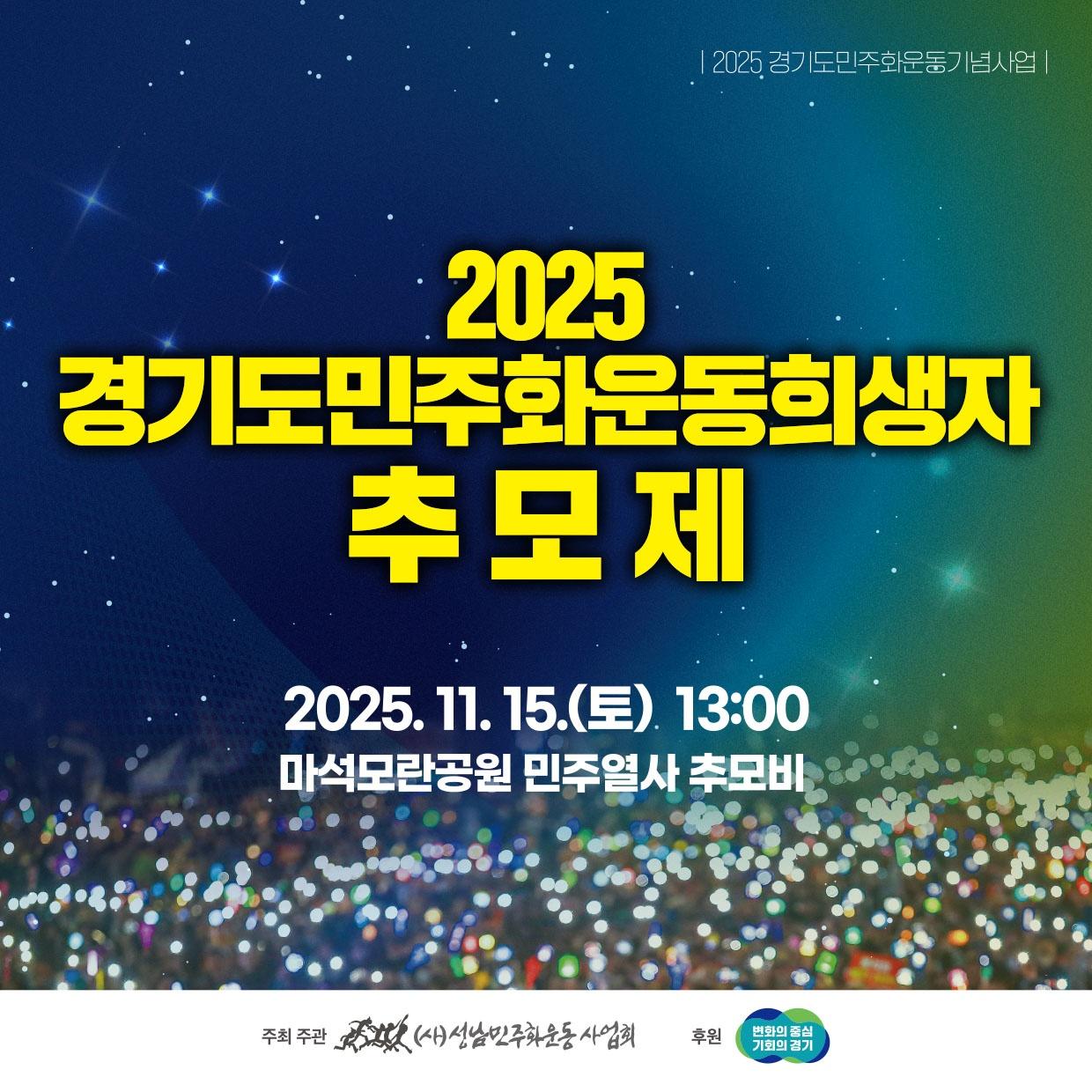 이번 행사는 (사)성남민주화운동사업회가 주최·주관하고, 경기도가 후원한다. 추모제에는 김동연 경기도지사, 국회의원, 경기도의회 및 시의회 의원, 유관기관 및 단체장, 민주화운동 기념·계승 단체, 유가족 등 200여 명이 참석할 예정이다.