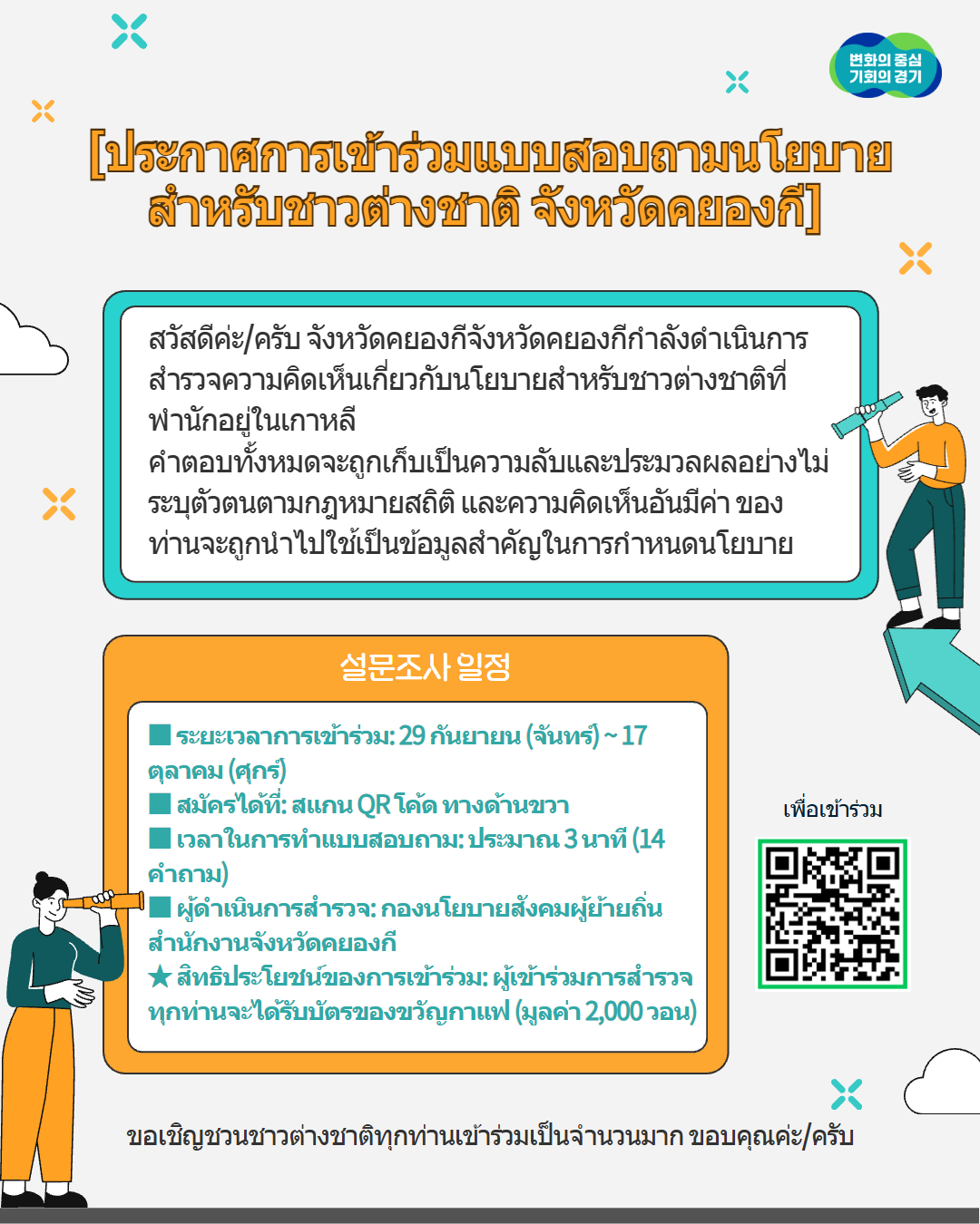 [ประกาศการเข้าร่วมแบบสอบถามนโยบายสำหรับชาวต่างชาติ จังหวัดคยองกี]